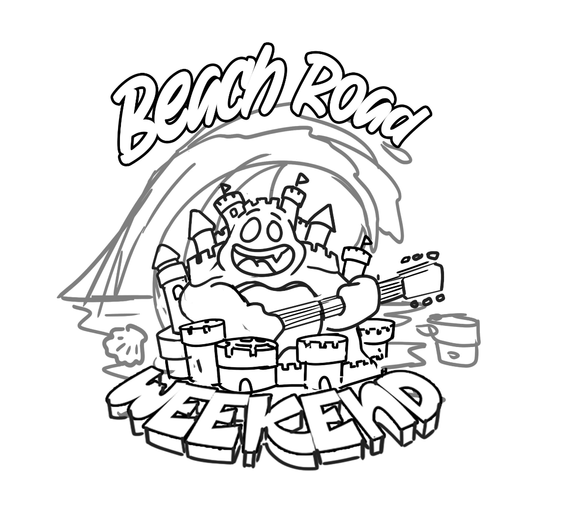 They wanted to bring some playful character designs to their T-shirt and hat line, and came to me with a hilarious concept: a sandcastle playing a guitar. After a few creative iterations, we landed on the design you see below. This was an incredibly fun project to work on—and the final T-shirts were a hit!